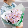 Монобукет из кустовых хризантем сорта Балтика в упаковке