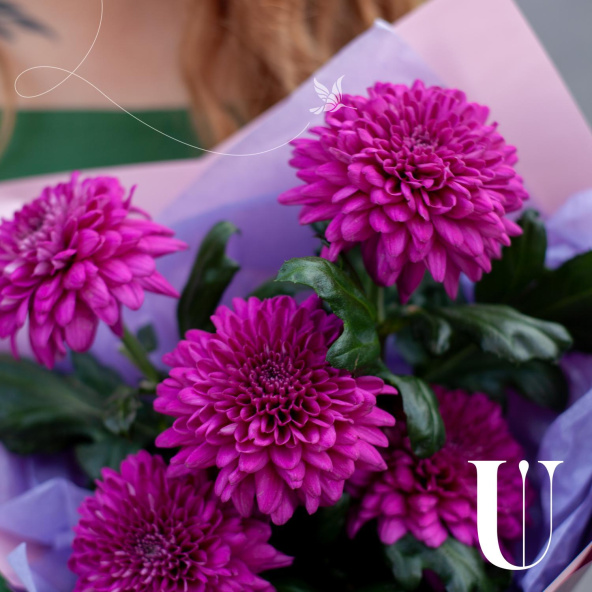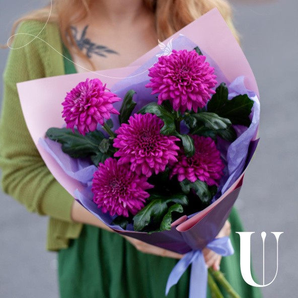 Монобукет из фиолетовых кустовых хризантем к 1 сентября