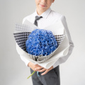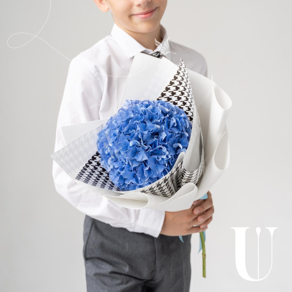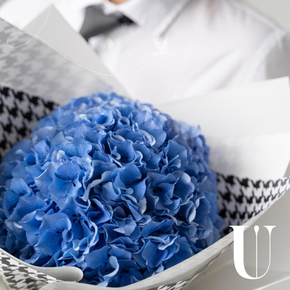 Мини-букет из радужной гипсофилы в голубой упаковке