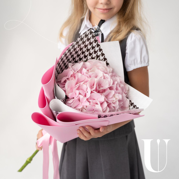 Букет из синей гортензии в упаковке к 1 сентября