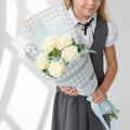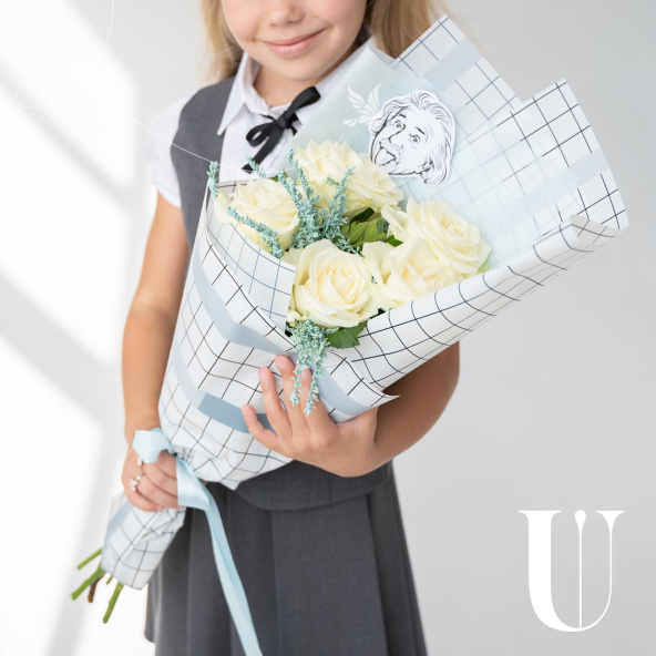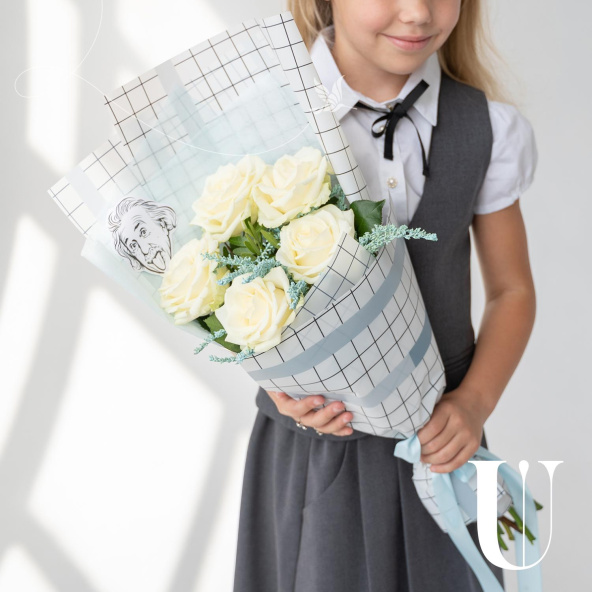 Букет из 5 белых роз в серой упаковке фоамиран
