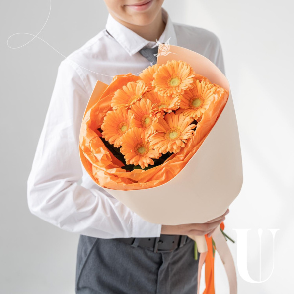 Монобукет из белых кустовых хризантем в дизайнерской упаковке