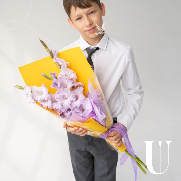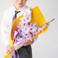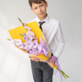 Монобукет из 7 розовых диантусов и эвкалипта в упаковке