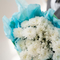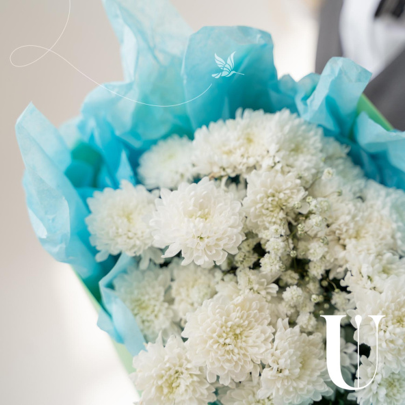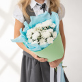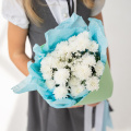 Монобукет из кустовых хризантем сорта Балтика в упаковке