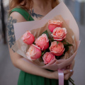 Монобукет из 7 роз сорта Кантри Блюз в дизайнерской упаковке