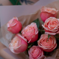Букет из роз Пинк Охара и малиновых роз в дизайнерской упаковке