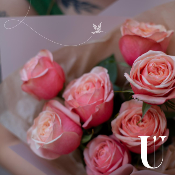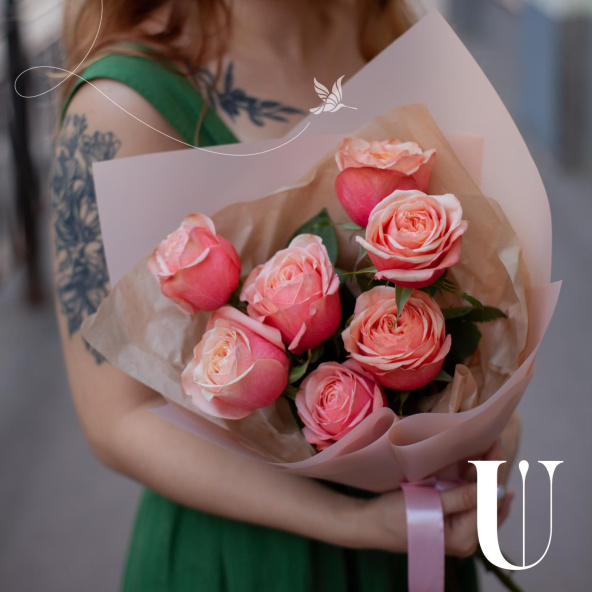 Монобукет из 5 роз сорта Мондиаль в дизайнерской упаковке