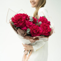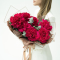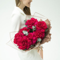 Стильный букет из пионвидных розовых роз в дизайнерской упаковке