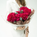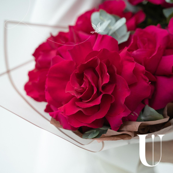 Букет из 11 красных роз сорта Ред Наоми в стильной упаковке фоамиран