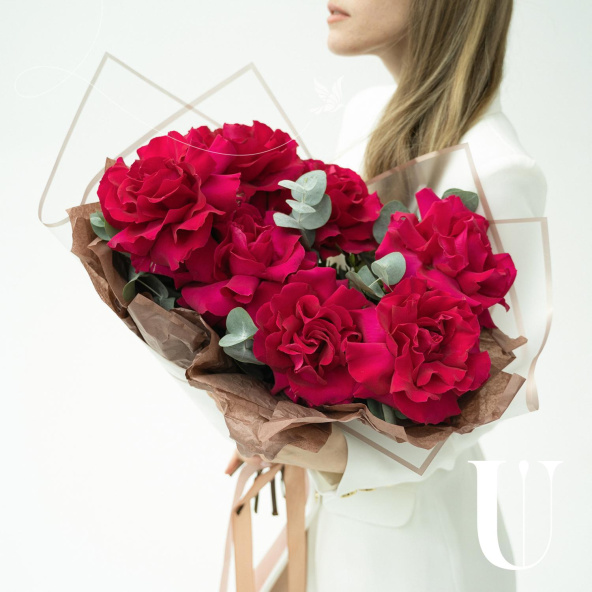 Монобукет из ультрамодных развернутых роз ярко-малинового цвета