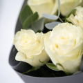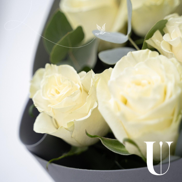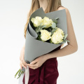 Монобукет из 7 роз сорта Капучино и эвкалипта в дизайнерской упаковке