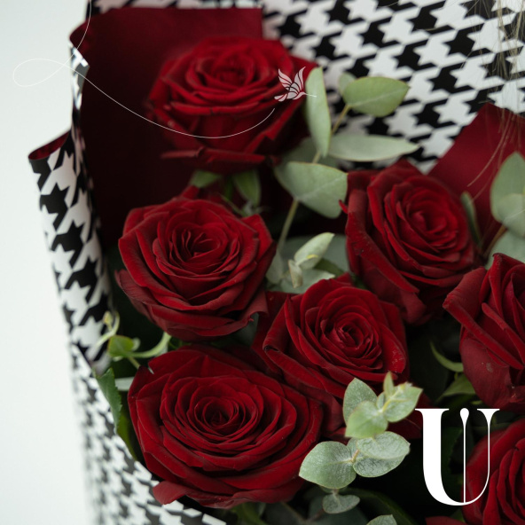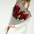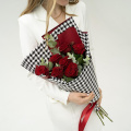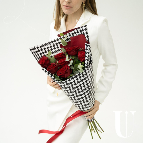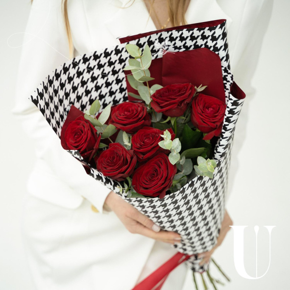 Монобукет из 7 красных роз в дизайнерской упаковке