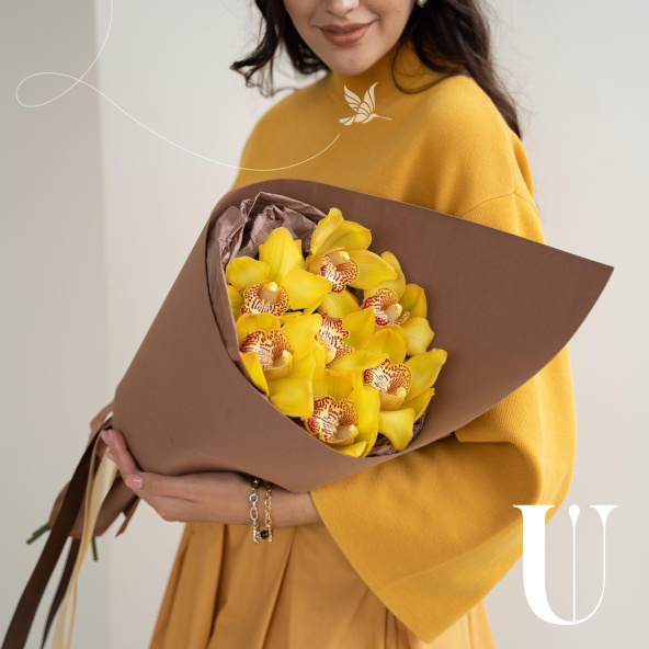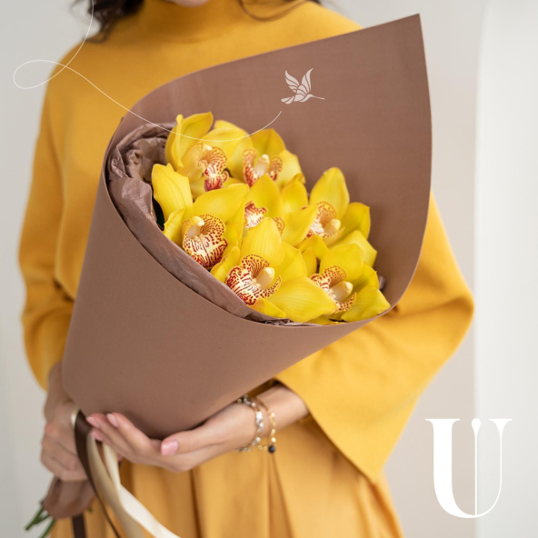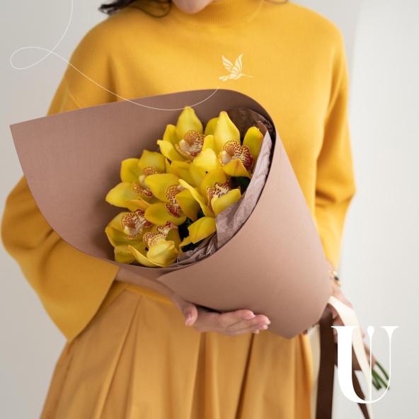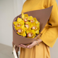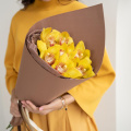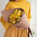 Монобукет из пионовидных роз Кахала и лимониума в нежной упаковке