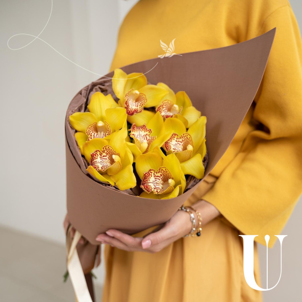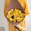 Монобукет из белых кустовых хризантем в дизайнерской упаковке