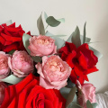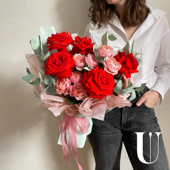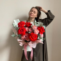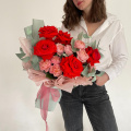 Монобукет из кустовых пионовидных роз Бомбастик в упаковке