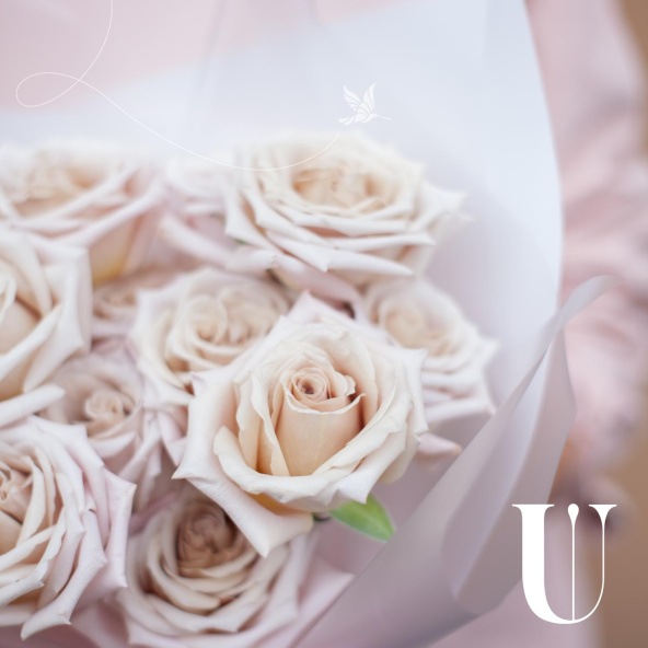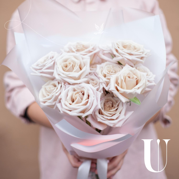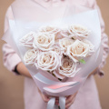 Монобукет из 9 роз Пинк Мондиаль в дизайнерской упаковке