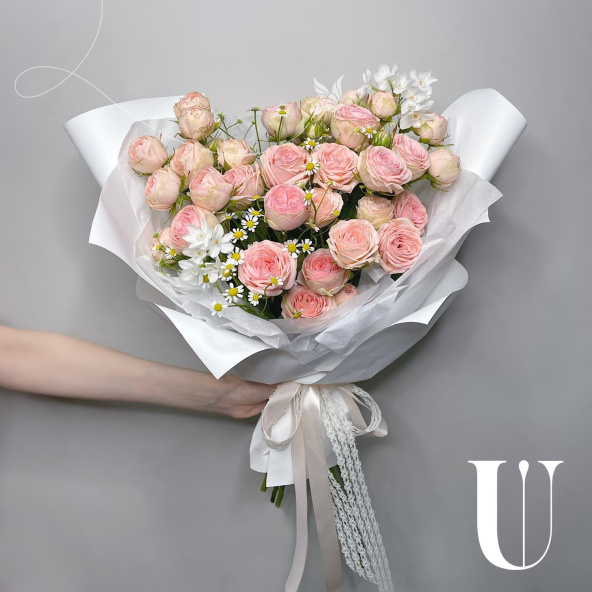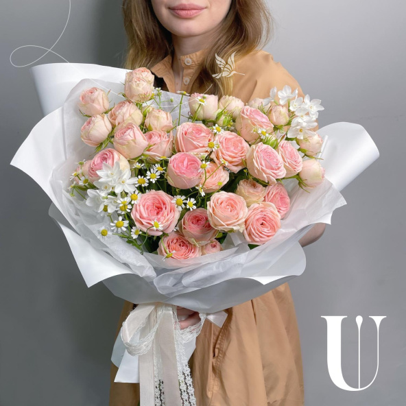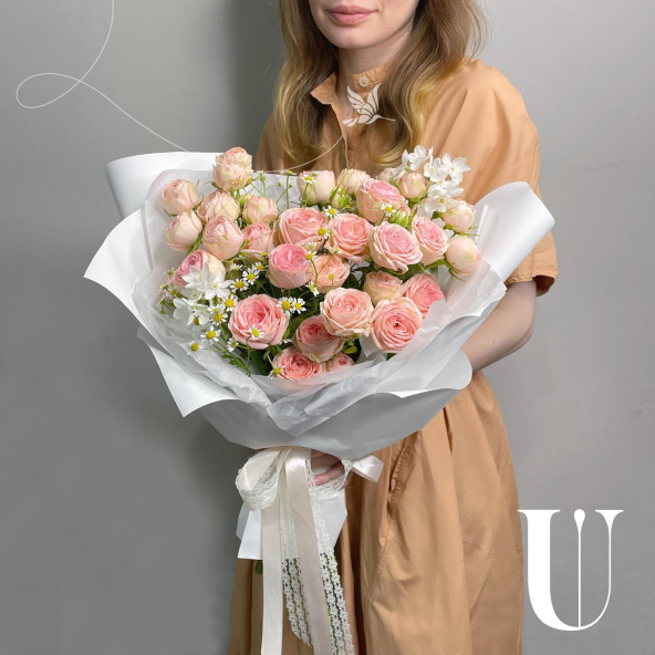 - Роза кустовая пионовидная, Бомбастик, нежно-розовая, 50 см. - 7 шт