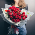 Букет из красных роз в стильной матовой пленке
