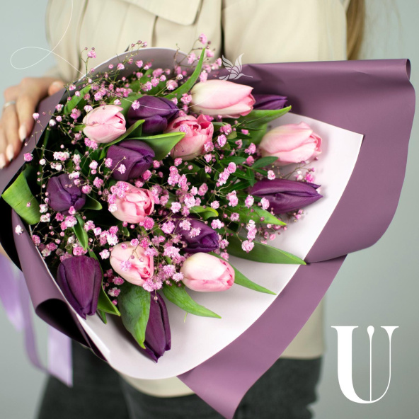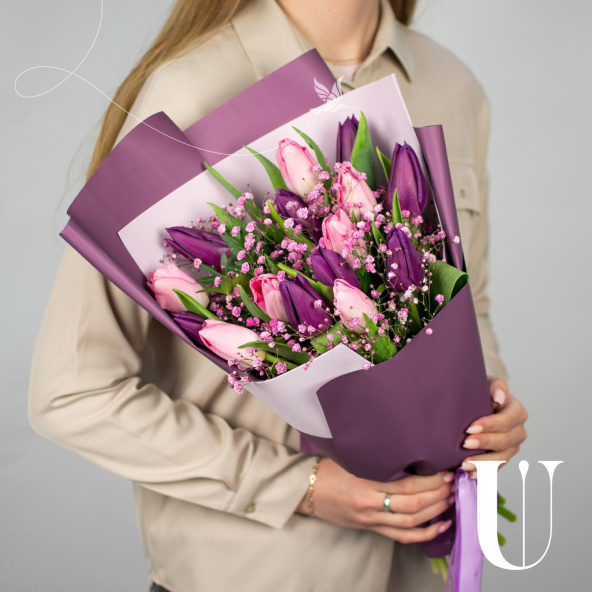Тюльпан фиолетовый и розовый - 15 шт