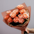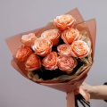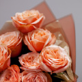 Монобукет из розовых кустовых пионовидных роз в дизайнерской упаковке