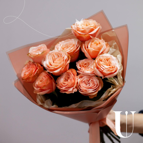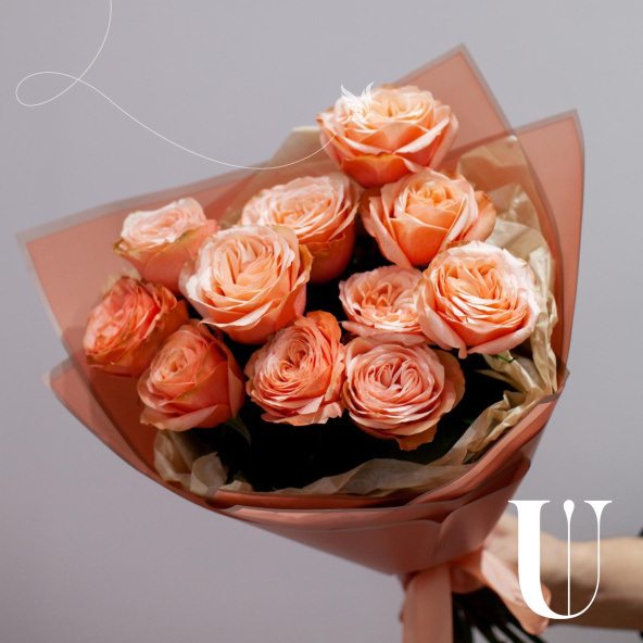 Монобукет из 9 роз Пинк Мондиаль в дизайнерской упаковке