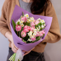 Букет из 7 пионовидных кустовых роз сорта Сильва Пинк