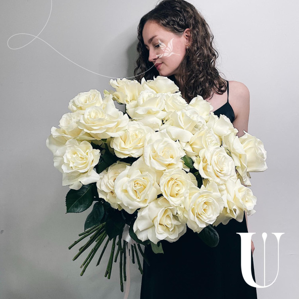Роза Мондиаль, Эквадор, белая, 60 см. - 25 шт
