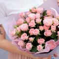 Монобукет из кремовых кустовых роз в упаковке