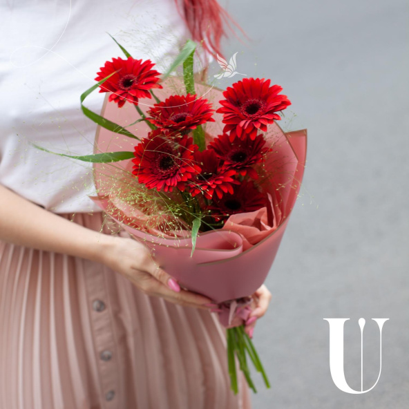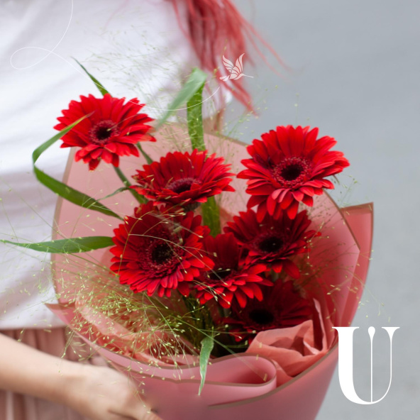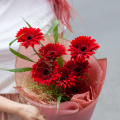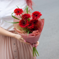 Монобукет из 7 розовых диантусов и эвкалипта в упаковке