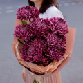 Монобукет из розовых кустовых пионовидных роз в дизайнерской упаковке