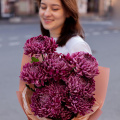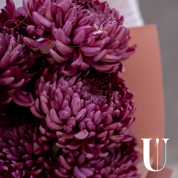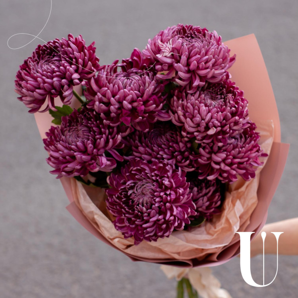Монобукет из 7 хризантем Бигуди в дизайнерской упаковке