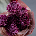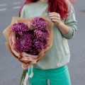 Букет из белых кустовых хризантем и розовых диантусов в упаковке