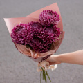 Букет из белых кустовых хризантем и розовых диантусов в упаковке