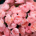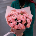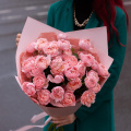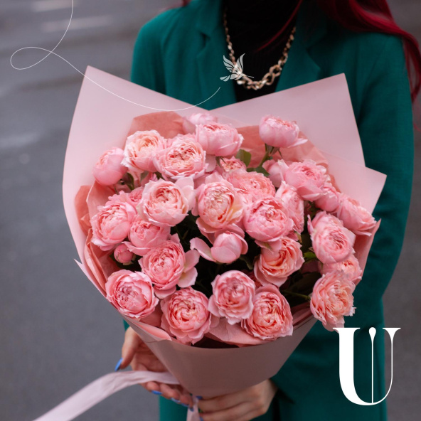 Монобукет из розовых кустовых пионовидных роз в дизайнерской упаковке