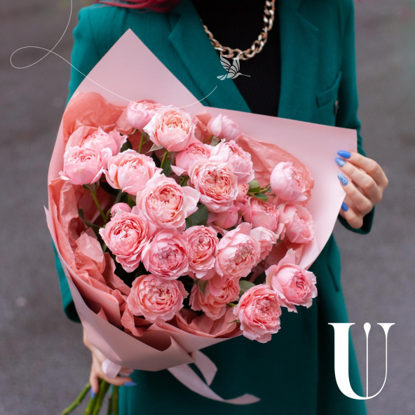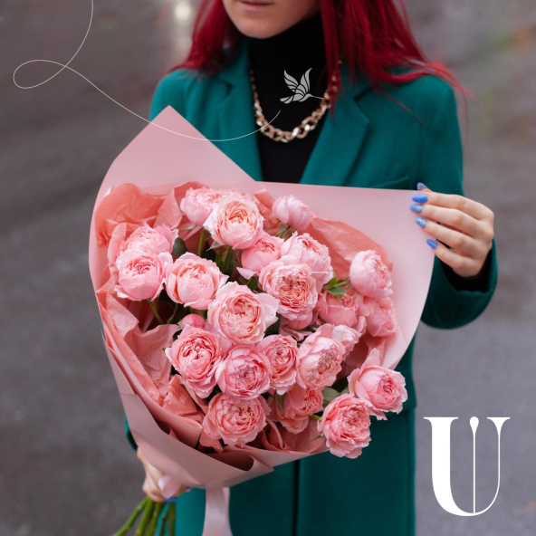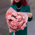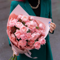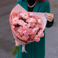 Монобукет из кустовых пионовидных роз Бомбастик в упаковке