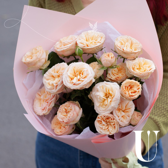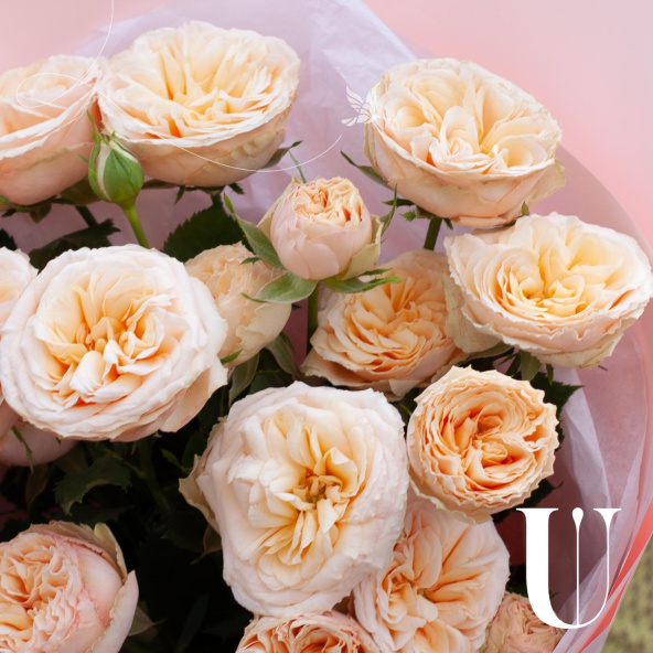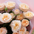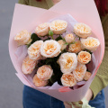 Монобукет из 7 роз сорта Капучино и эвкалипта в дизайнерской упаковке