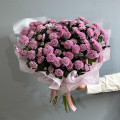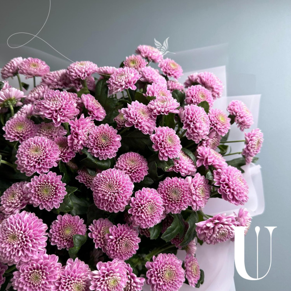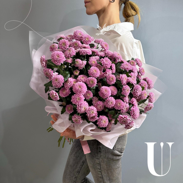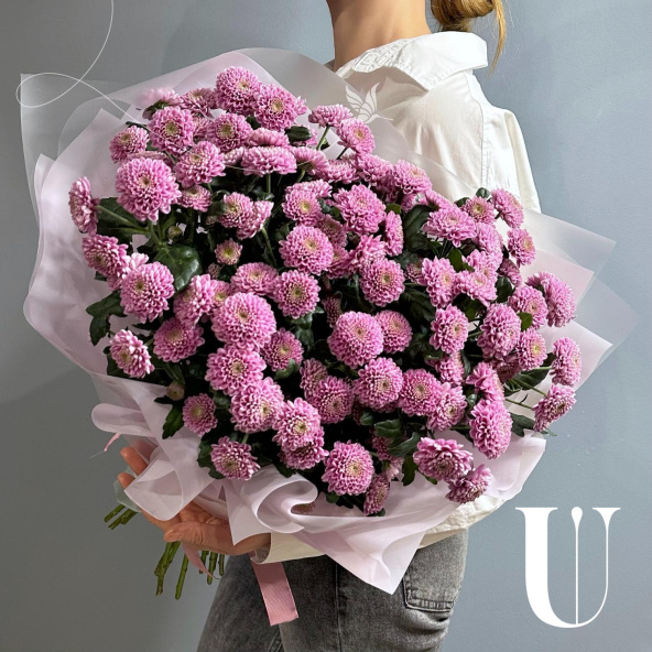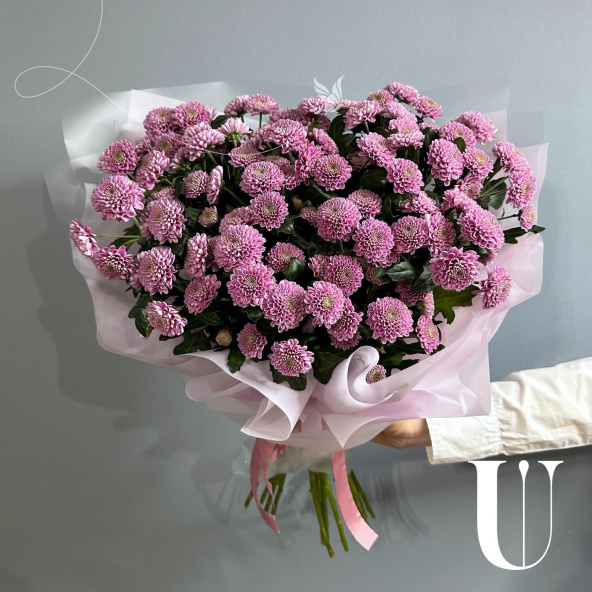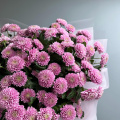 Монобукет из 7 розовых хризантем в розовой упаковке