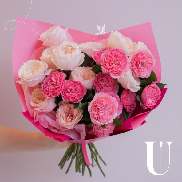 Монобукет из 15 хризантем Бигуди в дизайнерской упаковке