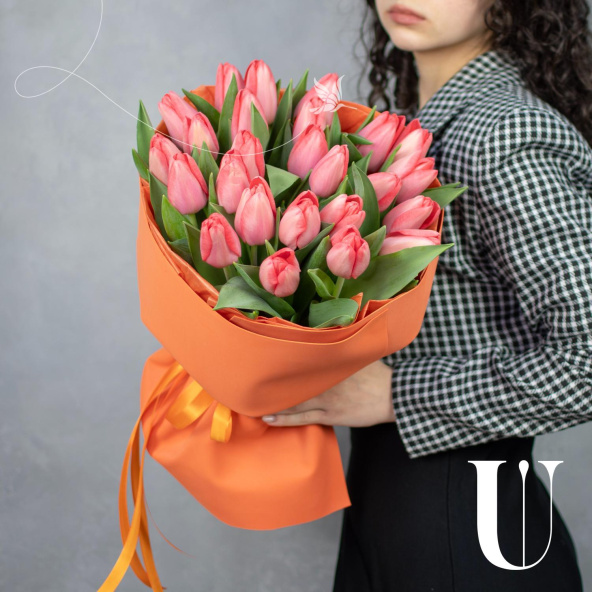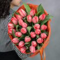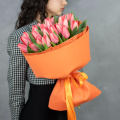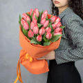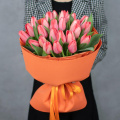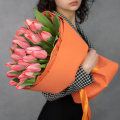 Букет из сиреневых пионовидных тюльпанов в дизайнерской упаковке