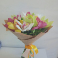 орхидея цимбидиум 15 колокольчиков, фисташка, удлинители, крафт, лента атлас.