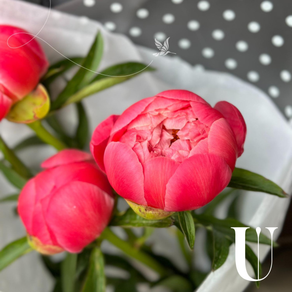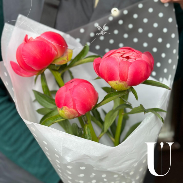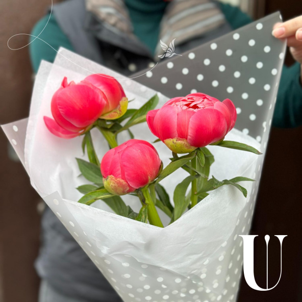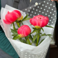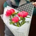 Монобукет из 7 розовых диантусов и эвкалипта в упаковке