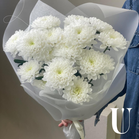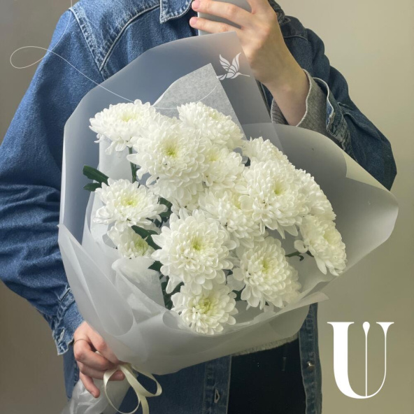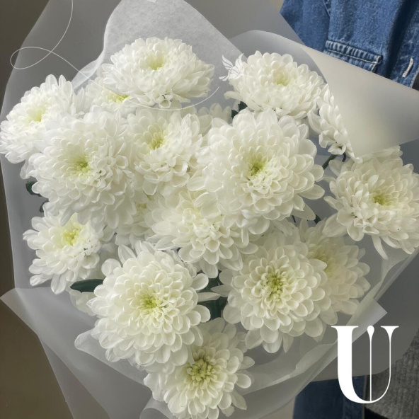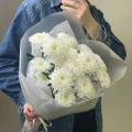 Монобукет из 7 розовых диантусов и эвкалипта в упаковке