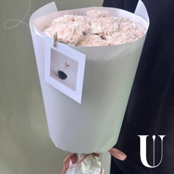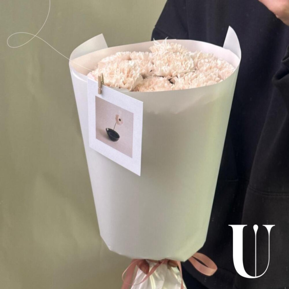 Монобукет из розовых гвоздик в упаковке