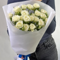 Монобукет из кремовых кустовых роз в упаковке