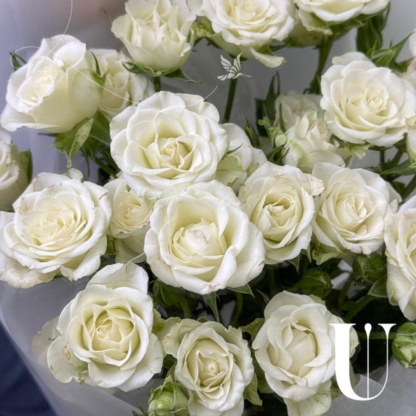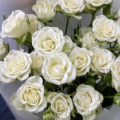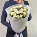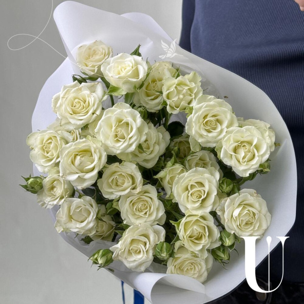Монобукет из кустовых белых роз в упаковке
