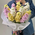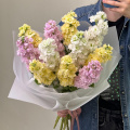 Букет из сиреневых пионовидных тюльпанов в дизайнерской упаковке