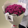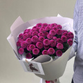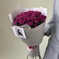 Букет из роз Пинк Охара и малиновых роз в дизайнерской упаковке