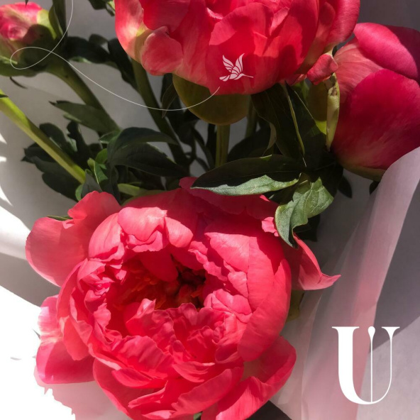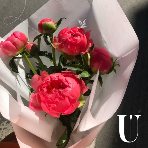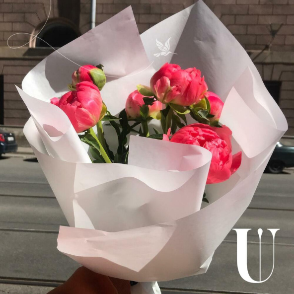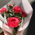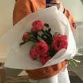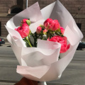 Монобукет из розовых кустовых пионовидных роз в дизайнерской упаковке