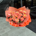 Яркий букет из роз воплощает в себе энергию и тепло летнего солнца. Этот сочный оттенок лепестков наполняет жизнь радостью и живостью, создавая вокруг себя атмосферу яркости и оптимизма.