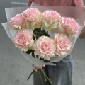 Монобукет из розовых гвоздик в дизайнерской упаковке